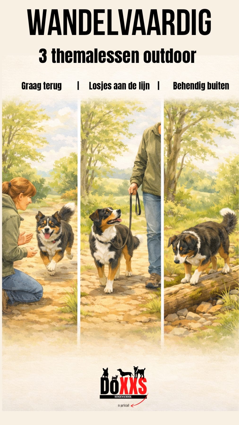 Bij DoXXS vinden meermaals per jaar themalessen outdoor plaats, telkens met een eigen thema. Deze lessen zijn gericht op wandelen, samenwerking, opvoeding en praktische vaardigheden in het dagelijks leven.